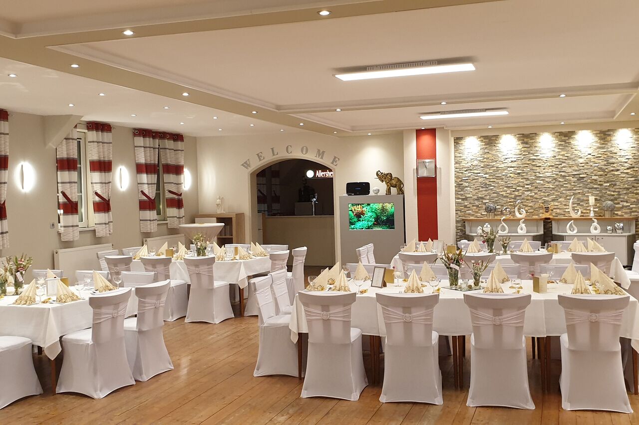 Unser Festsaal steht Ihnen für Hochzeiten, Jubiläen und andere Festlichkeiten zur Verfügung